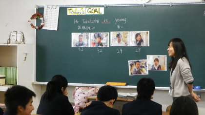 比較の表現を理解する授業では、学年の先生の年齢を題材にして授業を展開しました。