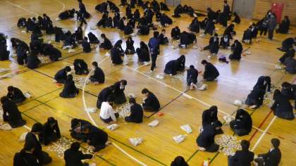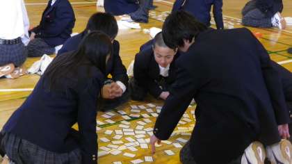 先週末(1/11)、1年生では、国語(古典)の授業の一環として百人一首を取り上げた事を生かして、学年全体で「百人一首大会」を実施しました。