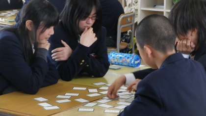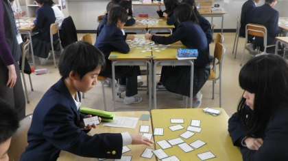 せっかく授業で触れた百人一首ですので、金曜日(1/11)には学年全体で「百人一首大会」を計画しています。