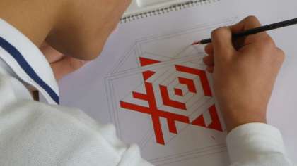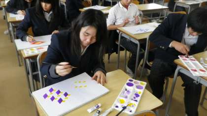 以前に紹介した「立体感のある平面構成」は色付けの段階に進んでいました。