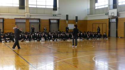 始業式・対面式の後、2年生では転入生の紹介がありました。