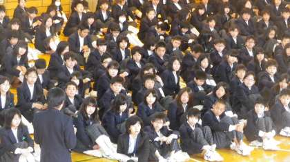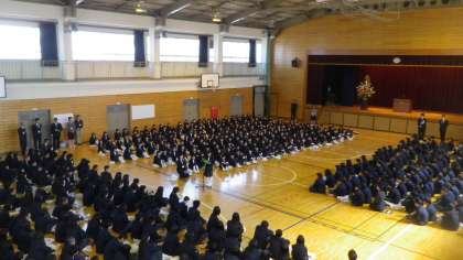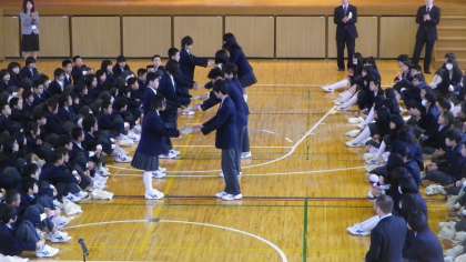 新入生のあいさつ、生徒会長の歓迎の言葉、上級生から1年生へ記念品の贈呈