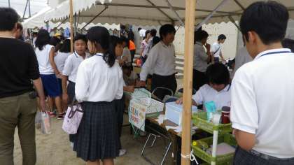 《毎年活躍の科学部 べっ甲飴と今年は液体窒素で凍らせたマシュマロも出品。》