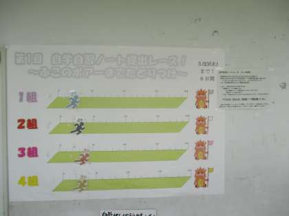 3年生の自学自習ノートのクラスの提出状況の票です。(1枚目)
