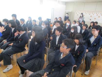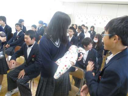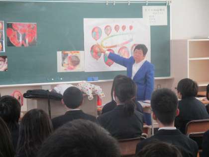 今日は1年生の全ての学級で命の学習を行いました。講師先生はこれまでも本校を始め、市内の中学校において授業を行って頂いている元養護教諭の先生です。ご自身の生い立ちから、子どもを産むことの大変さ、そして、命がいかに大切でご両親を始め多くの人から祝福されて生を受けてきたのかについて、お話ししていただきました。