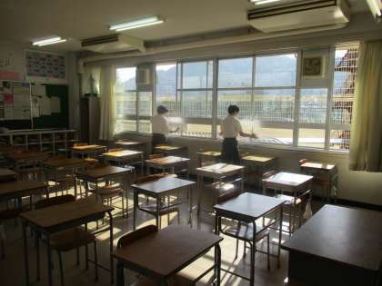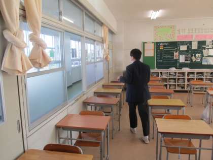 早朝から登校してテスト勉強をしていた3年生は全教室の教室の換気をしてくれました。