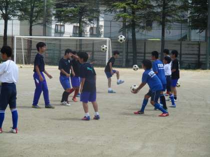 諸福中学校との合同練習です。写真は練習開始直後の様子です。