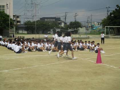 4時間目は1年生の学年練習です。体育委員が良く活躍していました。