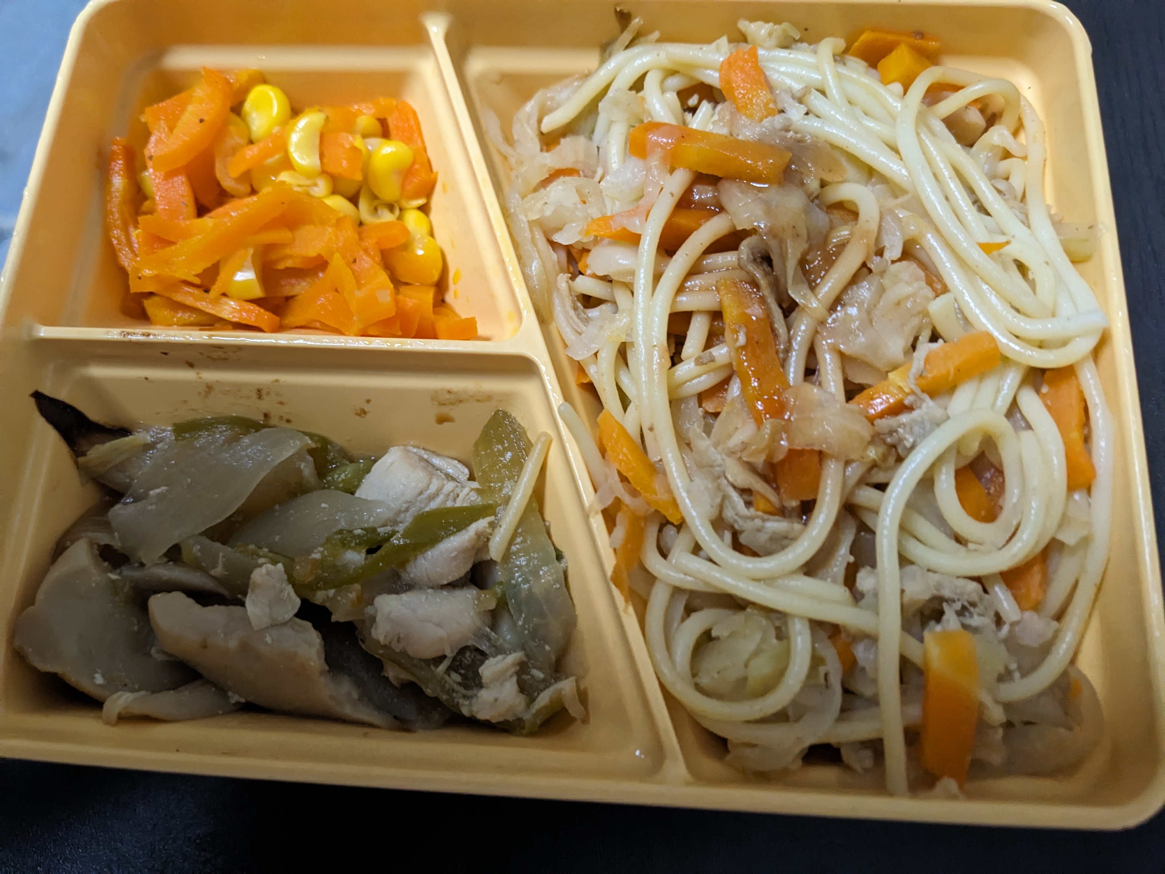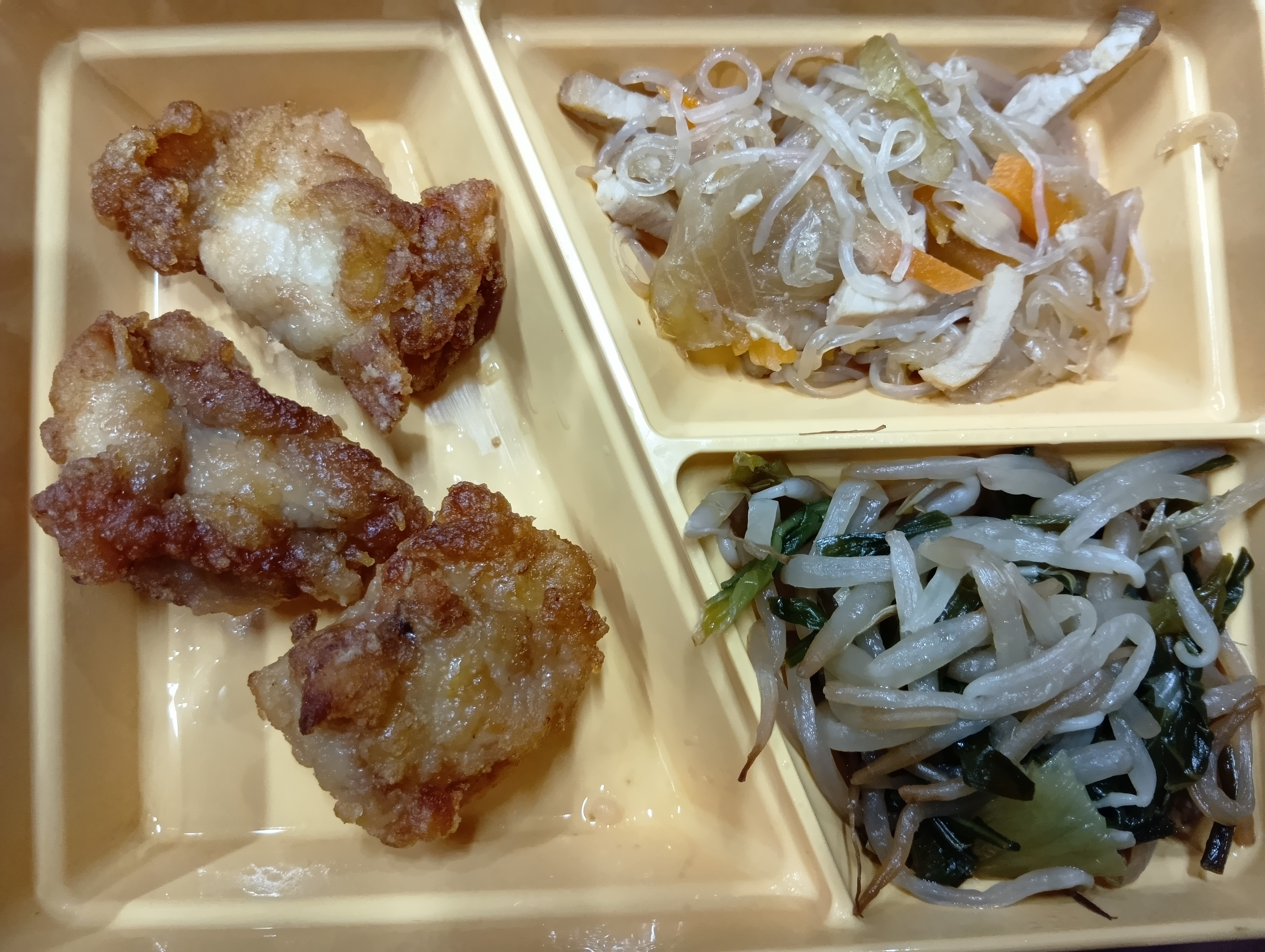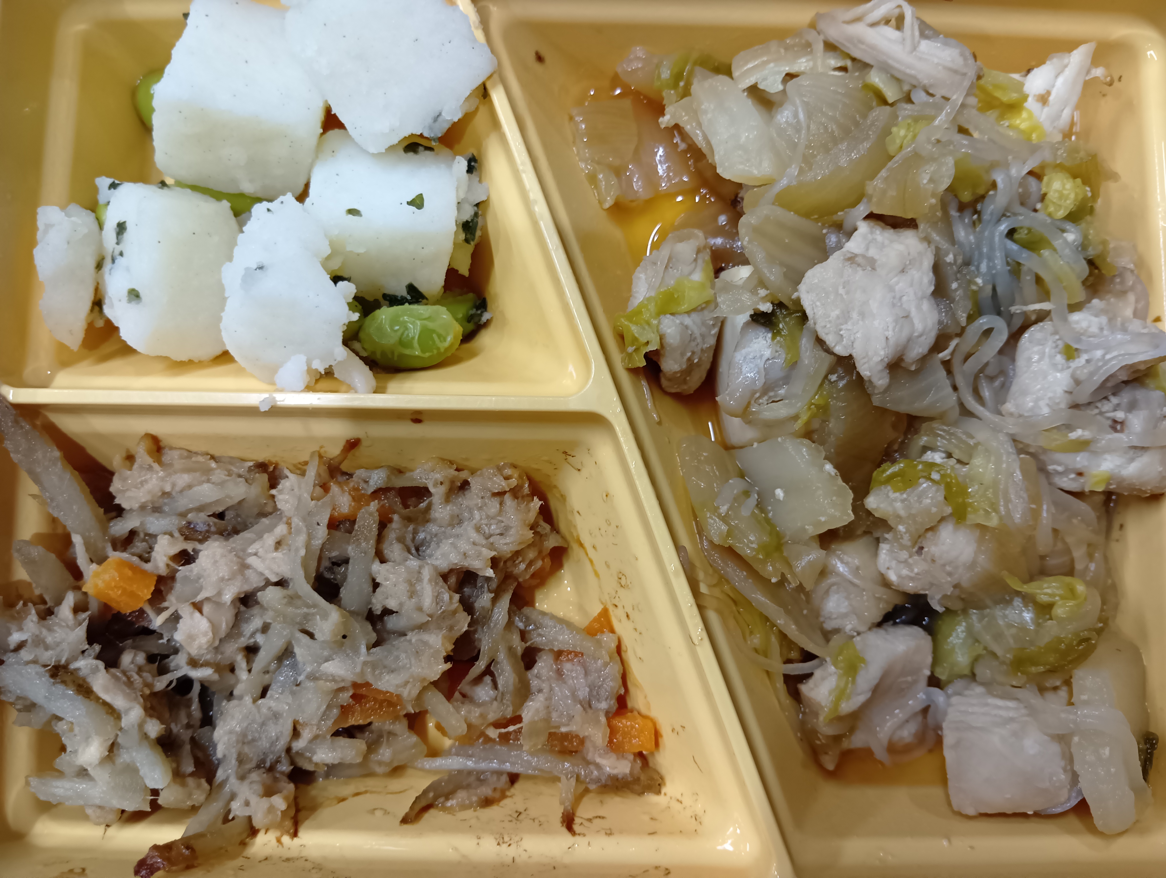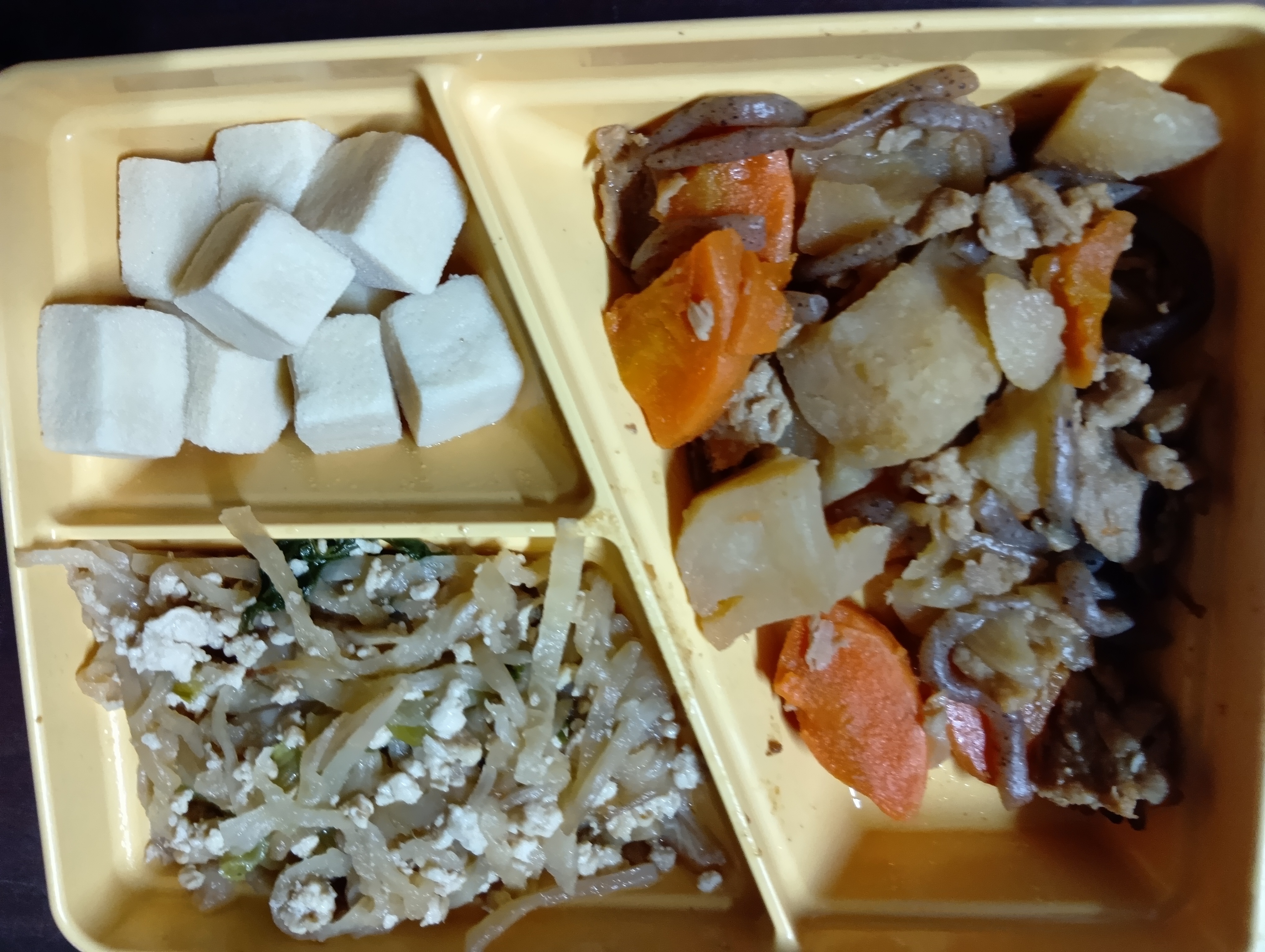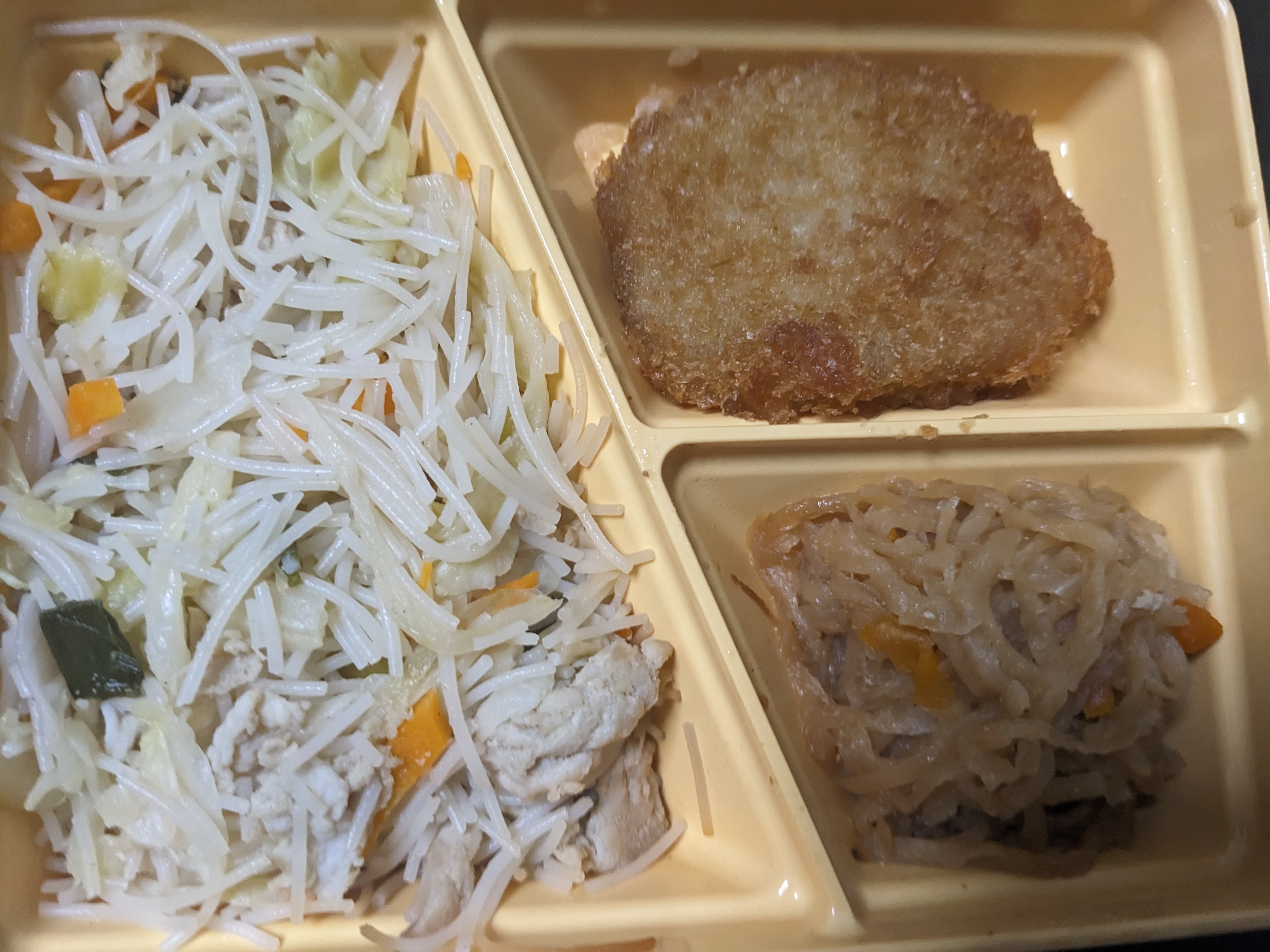 白ご飯・炒めビーフン・高野豆腐の含め煮・シーチキンのそぼろ煮・牛乳