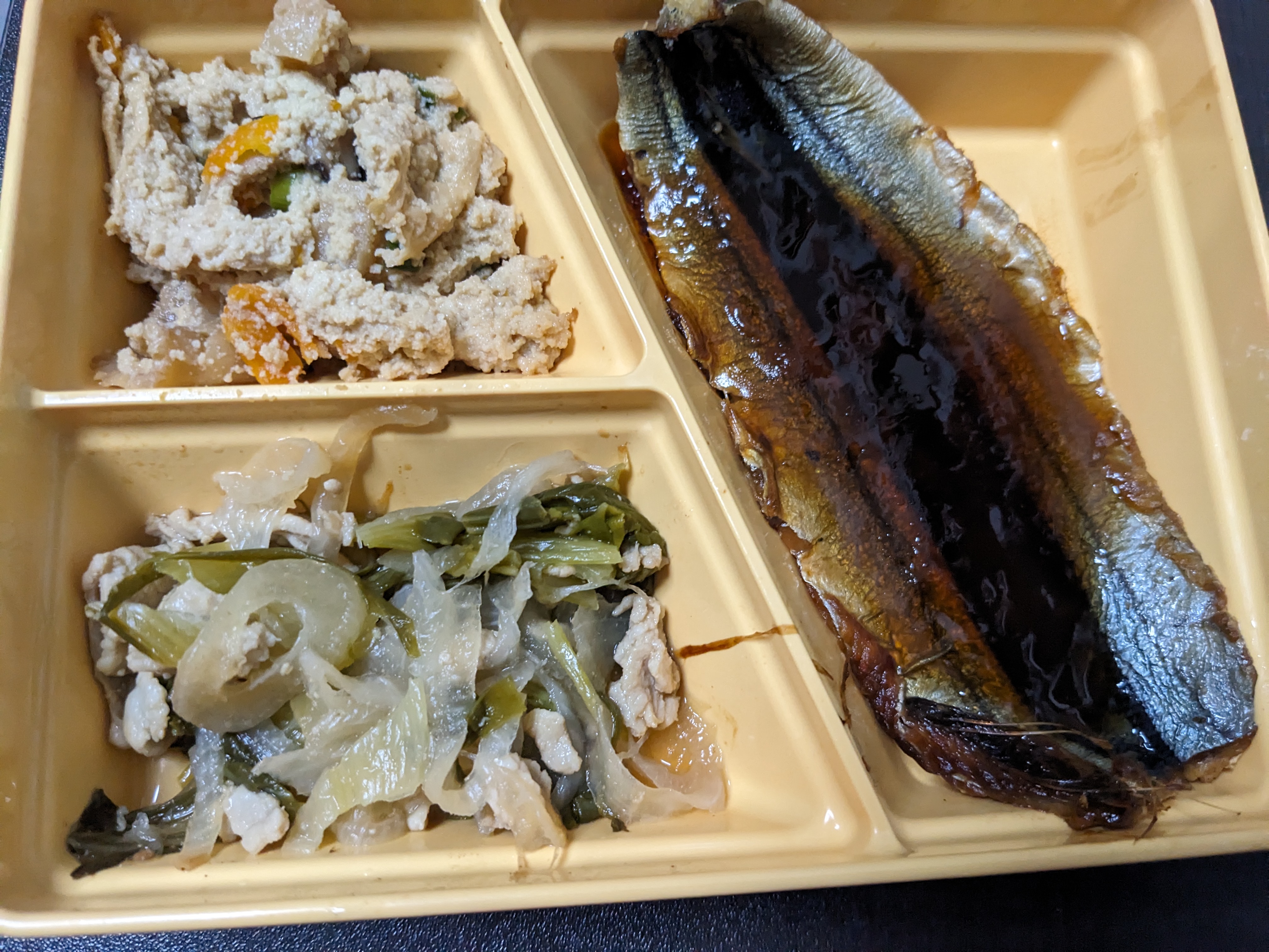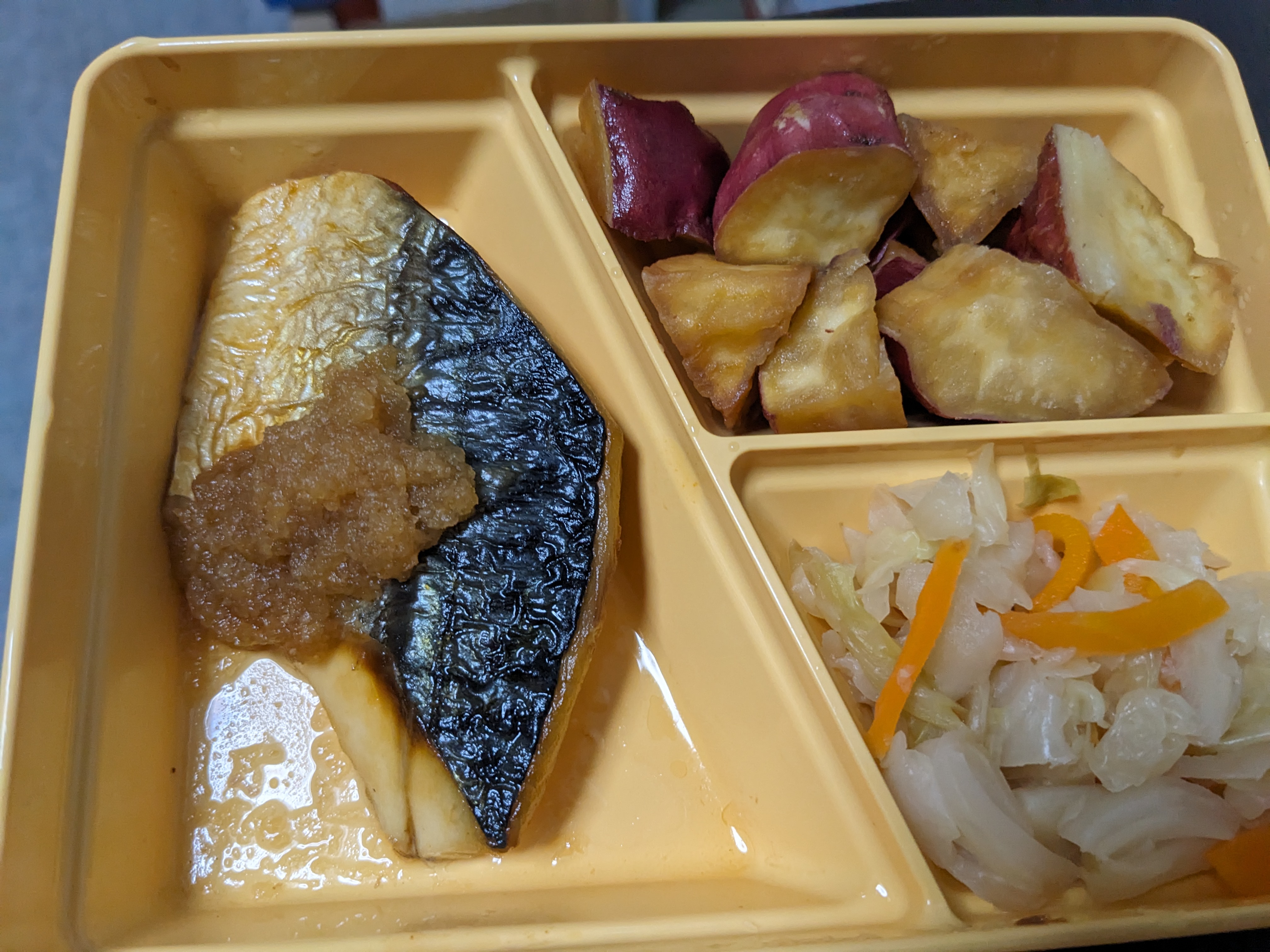 菜めし・塩鮭・炒り鶏煮・さつまいもの甘煮・すだちゼリー・牛乳