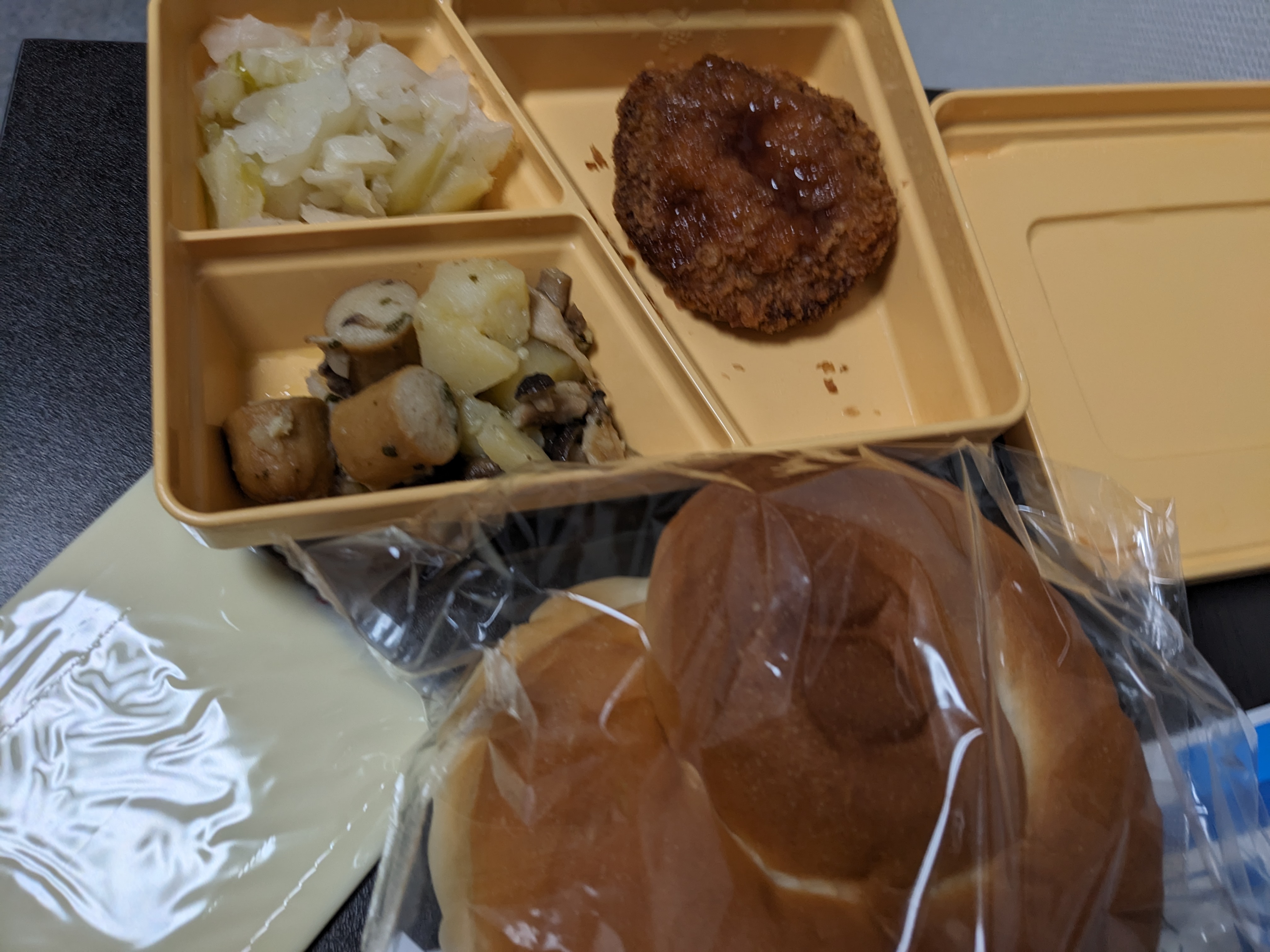 ハニーパン・マカロニウィズミートボール・キャベツとハムのサラダ・じゃがいものツナ和え・スライスチーズ・牛乳