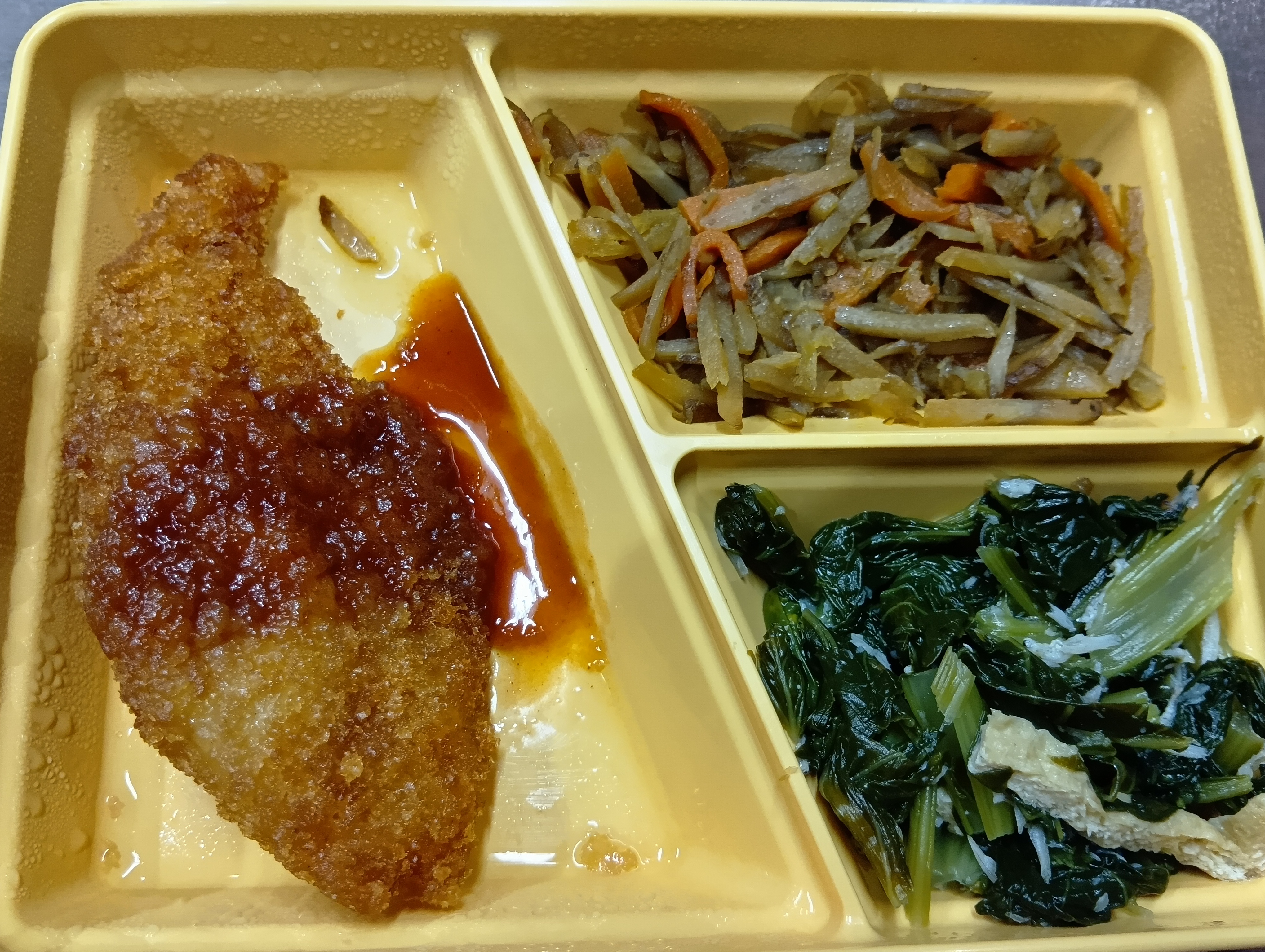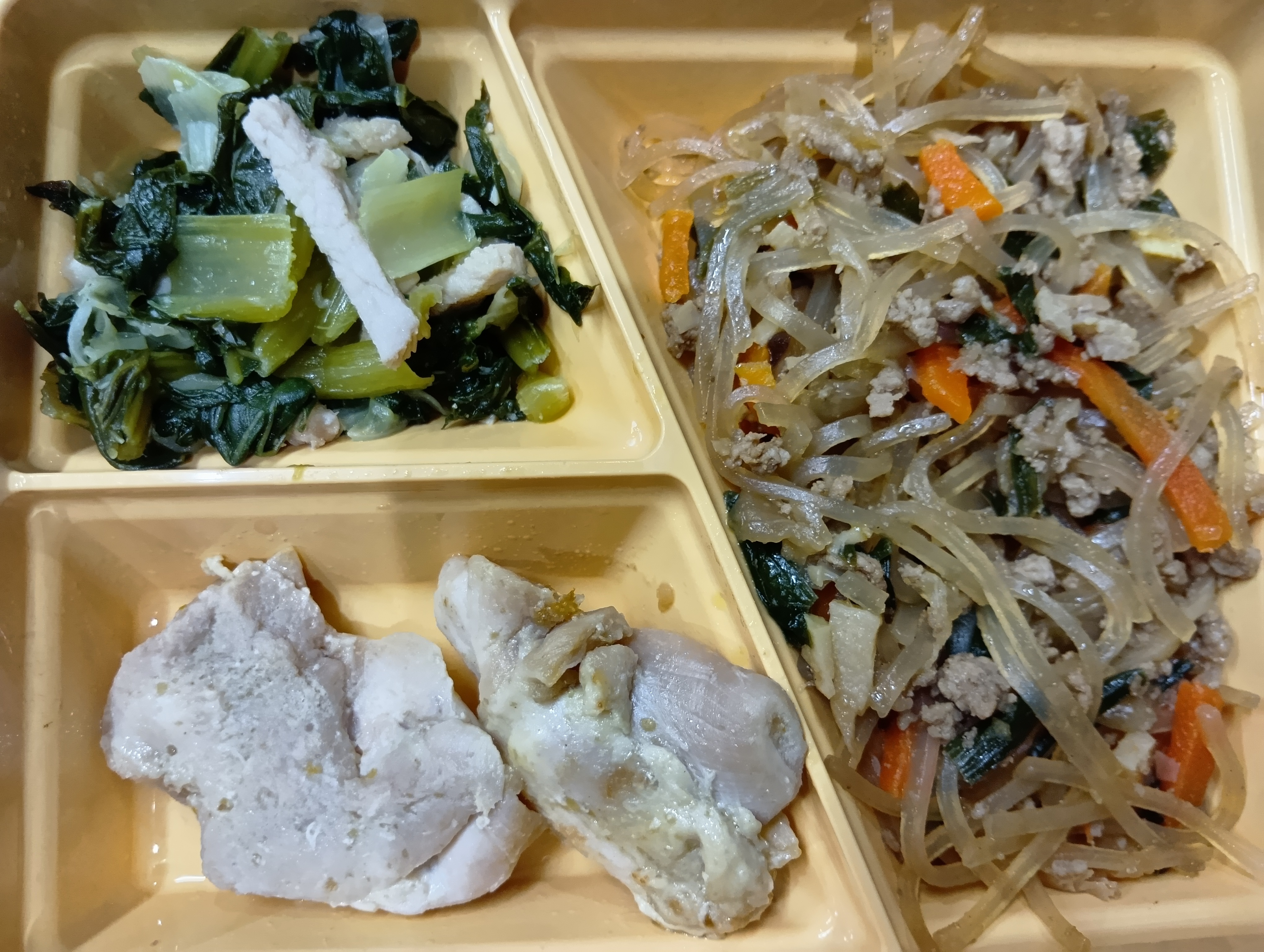 白ご飯・チキン南蛮・タルタルソース・切干大根サラダ・豚挽肉と小松菜のにんにく炒め・牛乳