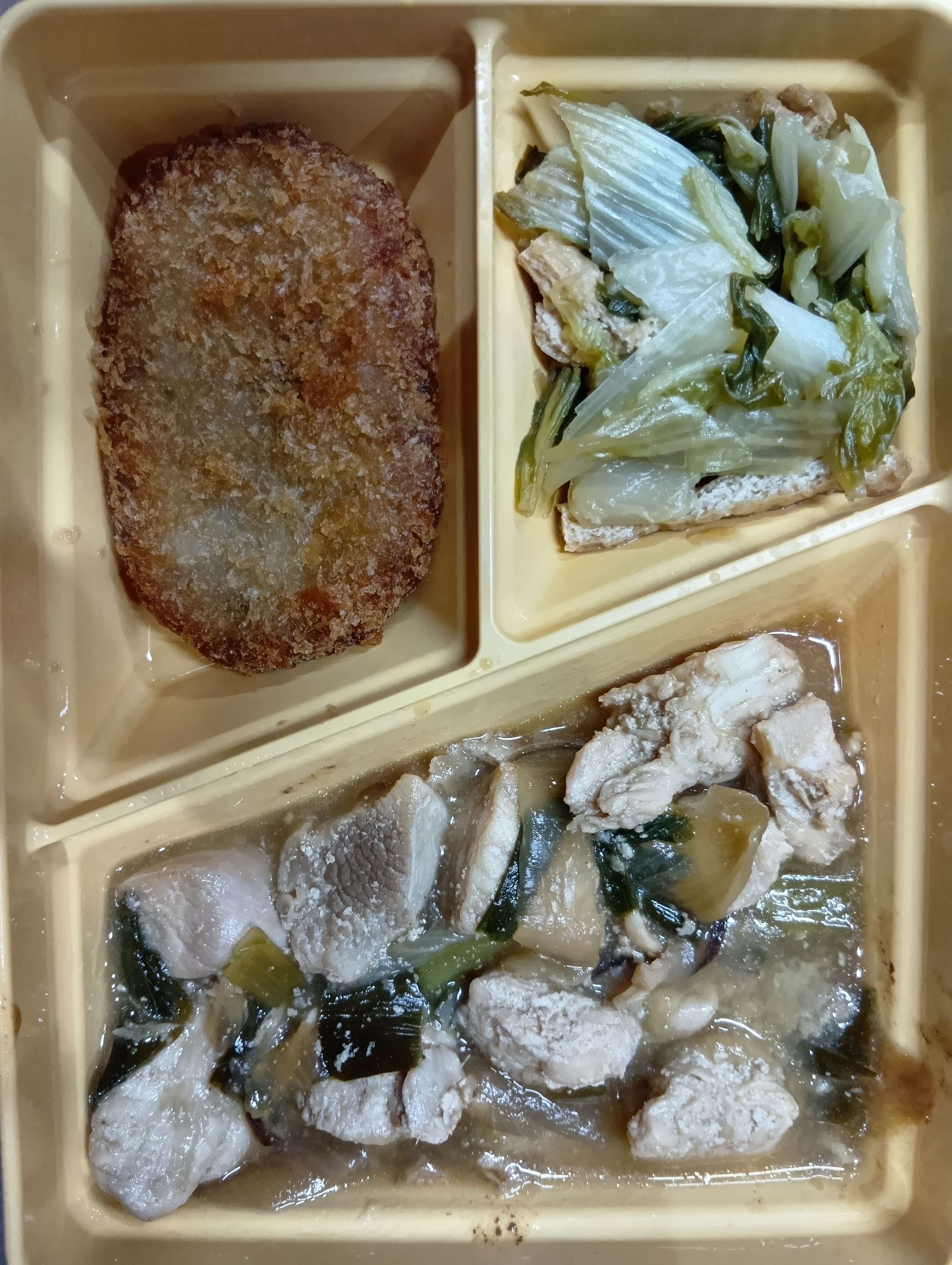 白ご飯・鶏じゃが・キャベツ入つくね揚げ・青菜の油炒め・牛乳