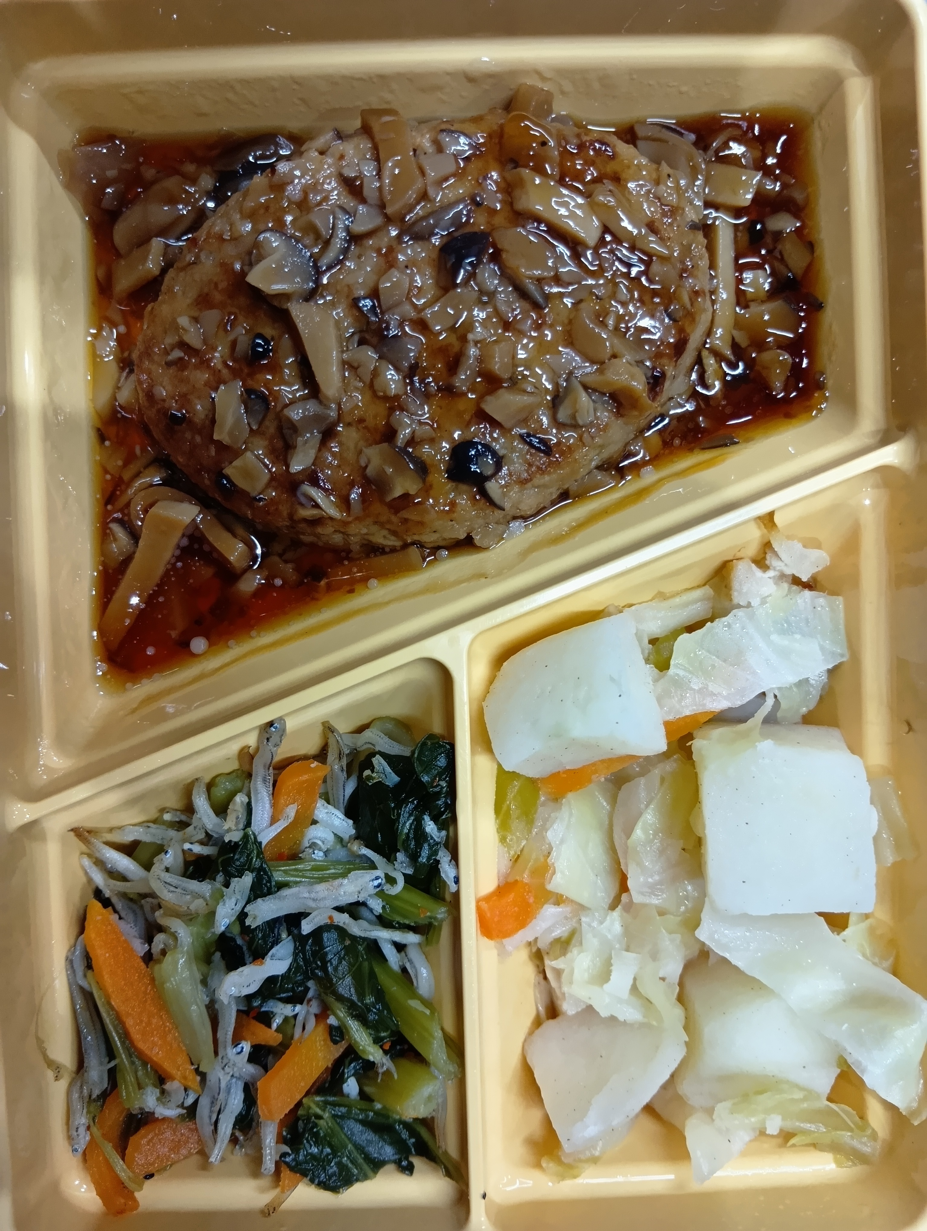 白ご飯・肉団子の甘酢あんかけ・煮びたし・佃煮ふりかけ・牛乳