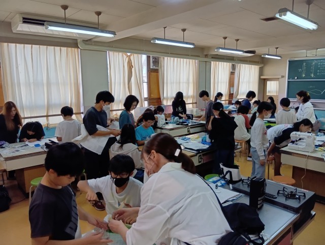 6年生では、ミシンの補助として、保護者のみなさんにも手伝っていただきました。