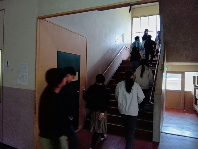 続いて、大きな津波がやってくる設定で、4階まで避難しました。