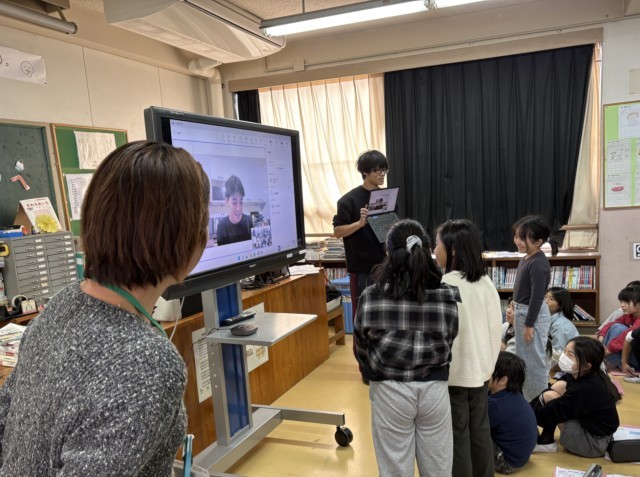 4年生が、フランスと回線をつないで、英語での国際交流をしました。