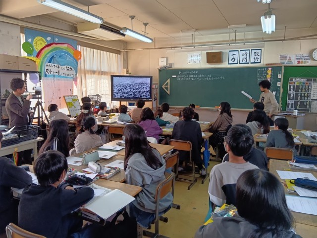 京都教育大学から授業研究の依頼があり、6年生の社会科の授業の中で取り組みました。