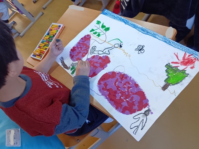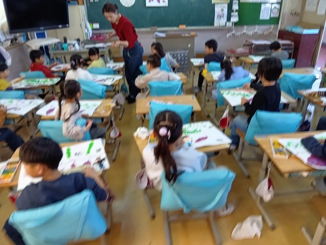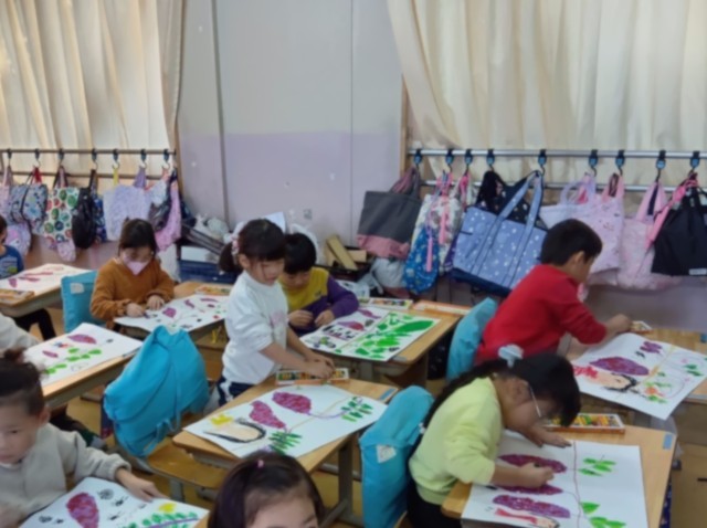 1年生が、図工で「おいもの絵」を描いていました。