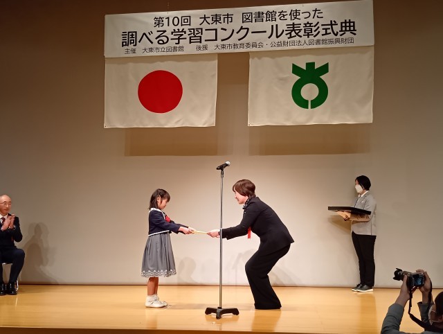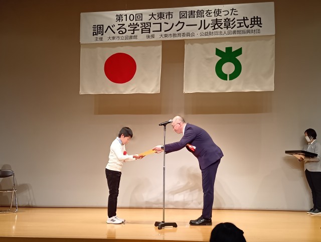 6日(土)、「大東市図書館を活った調べる学習コンクール」の表彰式が、サーティホールにて行われました。