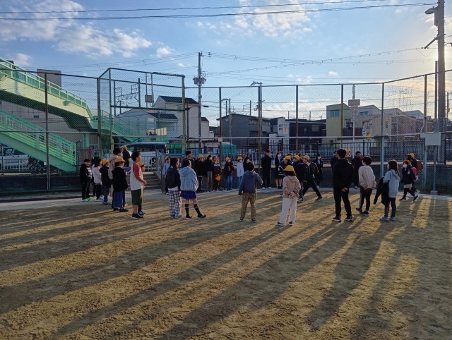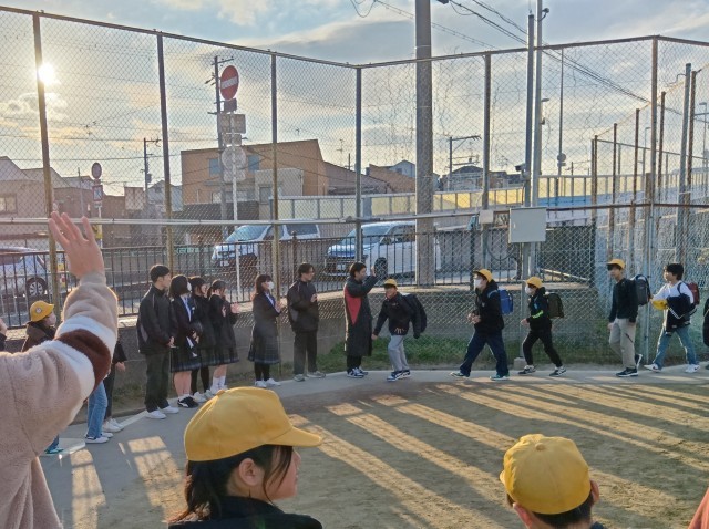 下校時、灰塚小の門の前で、「さようなら!」と元気に声をかけていました。