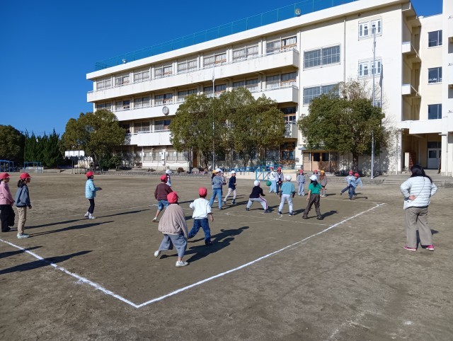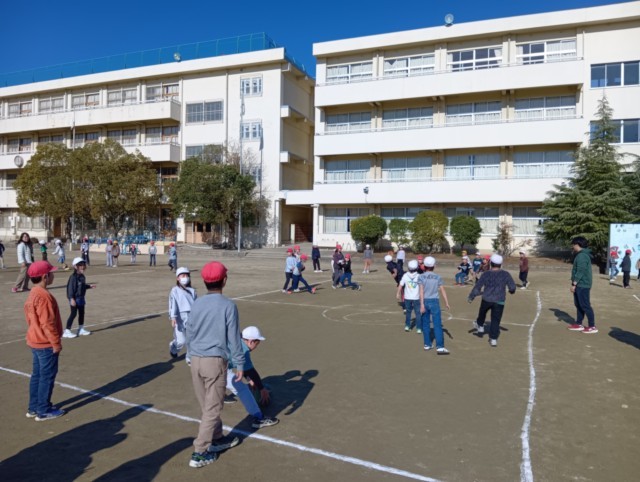 各クラスで2つのチームにわかれて、学年全体で楽しんでいました。