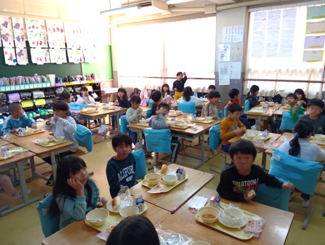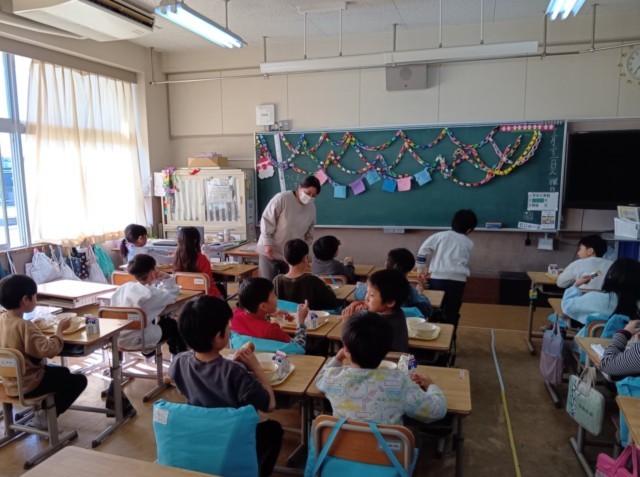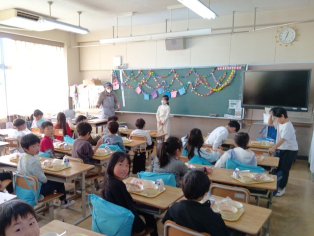 「先生、もう給食食べたん?」と、子どもたちも楽しそうに食べていました。