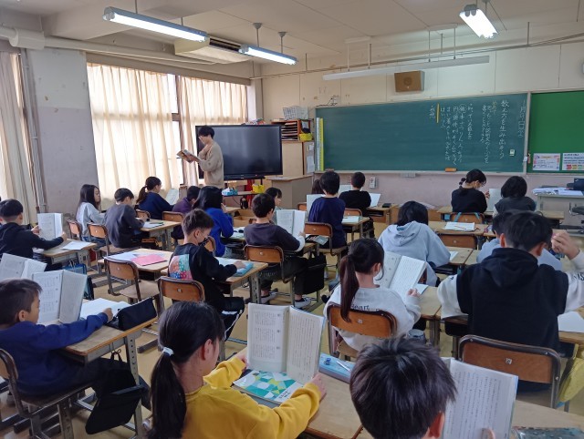 みんなで一斉に読んだり、タブレットで調べたり、意見を出し合ったりと、