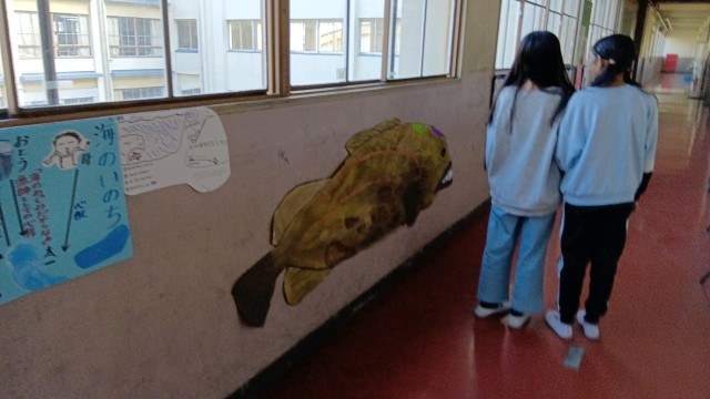最後の写真は、国語「海の命」に出てくる「瀬の主」(クエ)を6年生が作成したものです。