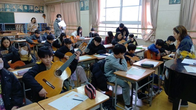 また、身近なものを使った図工作品やクラシックギターなど、芸術系の授業も楽しんでいました。