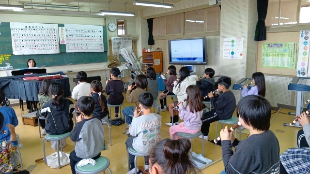 音楽では、2部に分かれてリコーダーの美しいハーモニーを奏でていました。