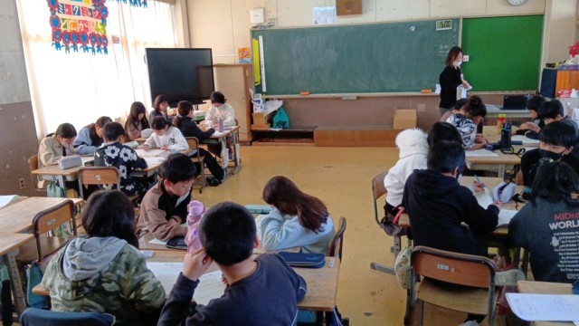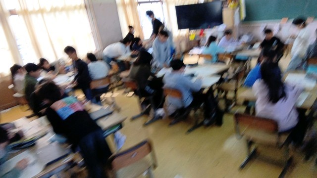 教室に入ると、「1問目はできたんやけどな~!」と頭を抱えています。