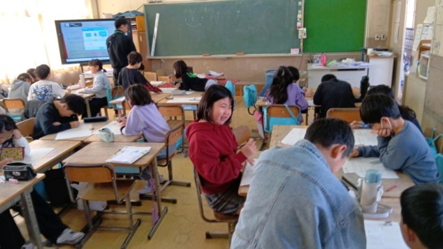 4年生が、算数の学習でジャンプ問題にチャレンジしています。