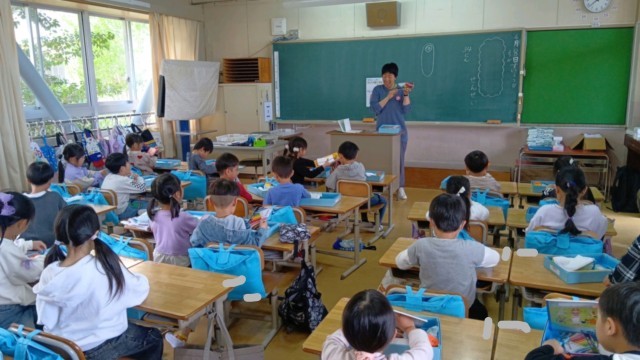 1年生は、いろいろな持ち物の片づけ方や話の聞き方など、学校生活の「いろは」から学んでいきます。