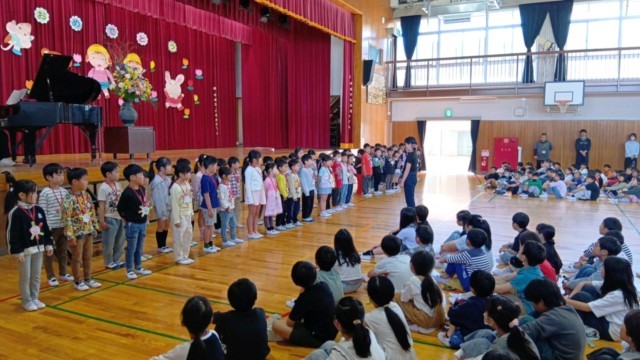 これでみんながそろった灰塚小。一緒に楽しく学んでいきましょう。