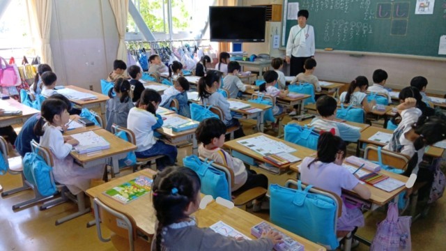 ついこの前に入学してきた1年生が、集中してひらがなに取り組んでいます。