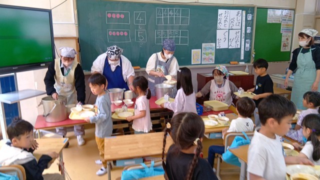 「今日の給食、楽しみ!」「今日はカレーやで!」と、朝から話をしていた1年生。