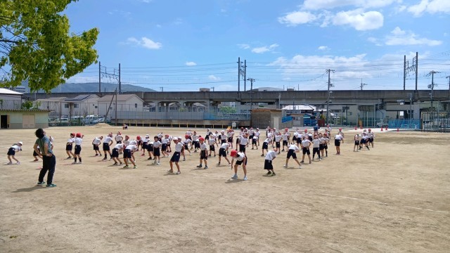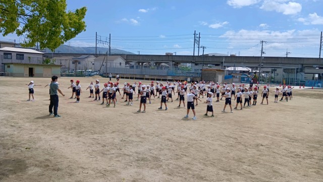 中学校での学習にスムーズにつなぐために、今年度からラジオ体操に変更しています。