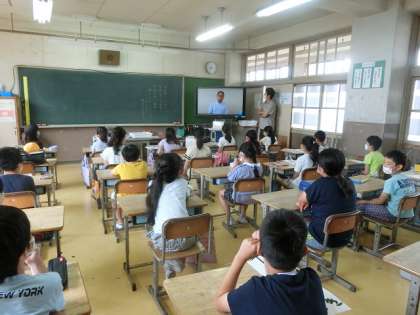 ビデオによる離任式ということにはなりましたが、一斉登校初日である今日子どもたちに聞いてもらうことにしました。対象は、2年生から6年生です。昨年度までお世話になった先生方にビデオ越しとはいえ会うことができて、よかったかなと思います。