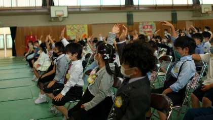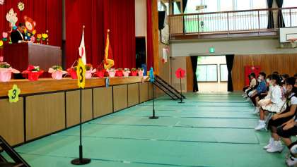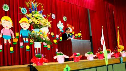 校長の「お祝いの言葉」をしっかり聴いていました。