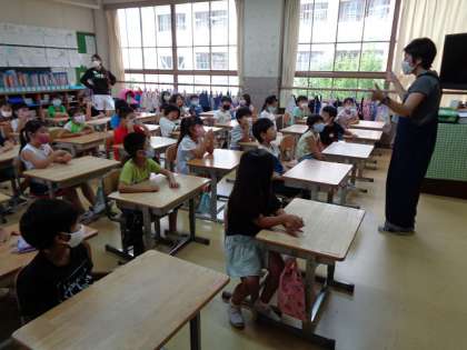 子どもたちは、教室で先生の指示に従いながら、避難経路等を確認していました。