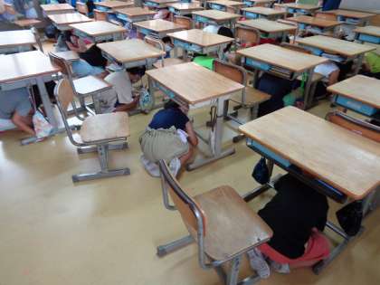 近い将来に予測されている大きな地震だけに学校全体で真剣に取り組みました。