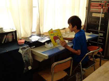 今日は本の朗読(ろうどく)をしてくれました。