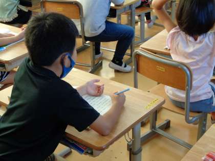 ちょうど文章の段落がかわるところに印をつけているところでした。