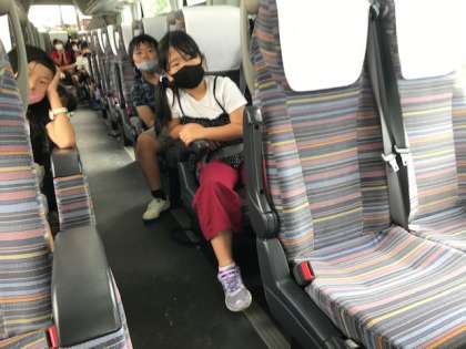 行き先は大阪市立科学館です。 バスの中では、ビデオを観て、静かにすわっています。