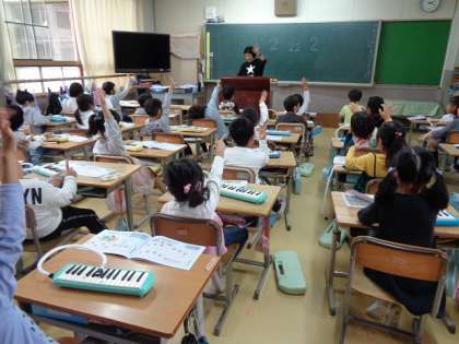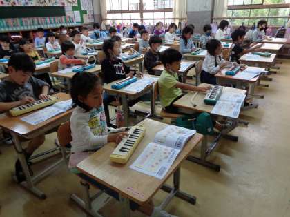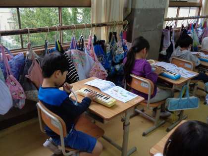 けんばんハーモニカの れんしゅうを していました。