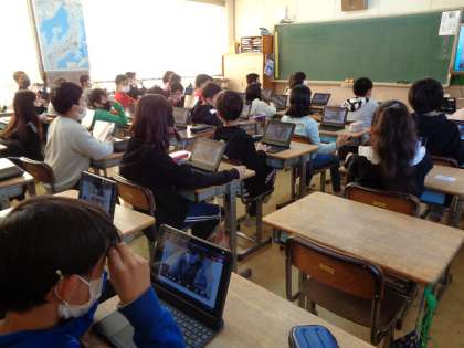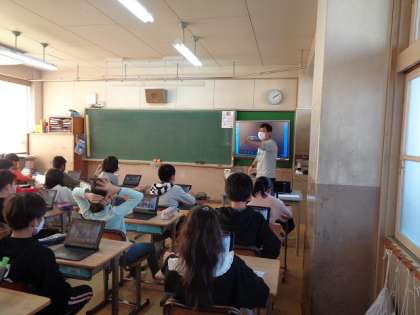 5年生の教室をのぞいてみると、さっそくタブレットPCを使ったリモート授業のための勉強をしていました。