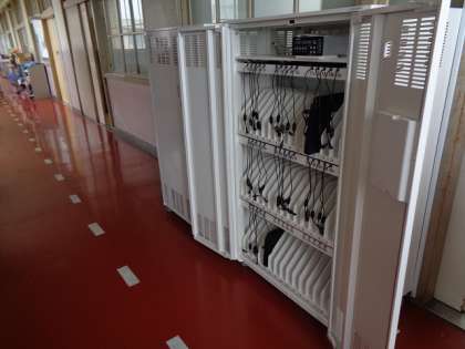 まず、夜のうちに充電されたタブレットをとりに行きます。