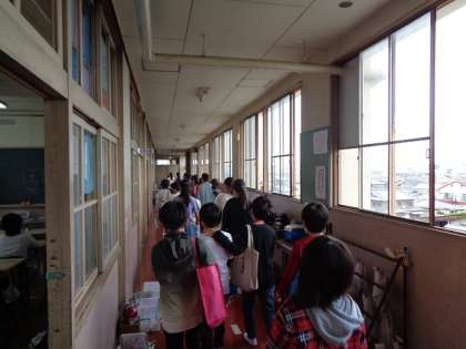 音楽など特別教室に行かなければならないときは、早めに用意をして、クラスみんなで並んで特別教室に向かいます。