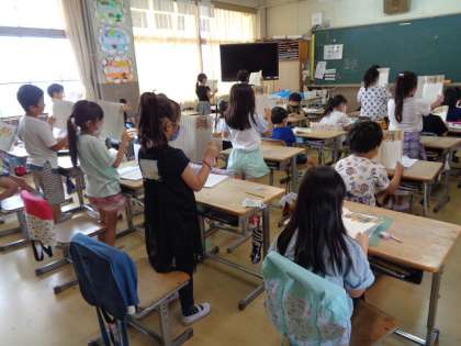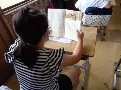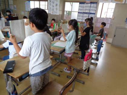 自分の ばんが くるのを まって、よむのですが、とてもじょうずに あわせていました。